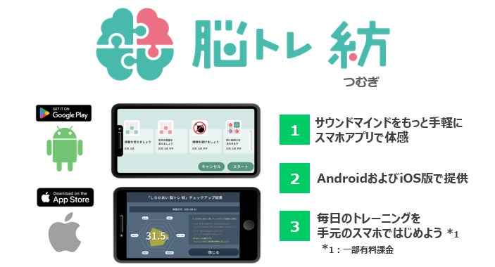 京セラみらいエンビジョン株式会社は、現在サービス提供中の「サウンドマインド」を一般ユーザー向けに、スマホアプリを開発し、iOS版とAndroid版でアプリ名「しらせあい 脳トレ 紡」の提供を開始しました。
