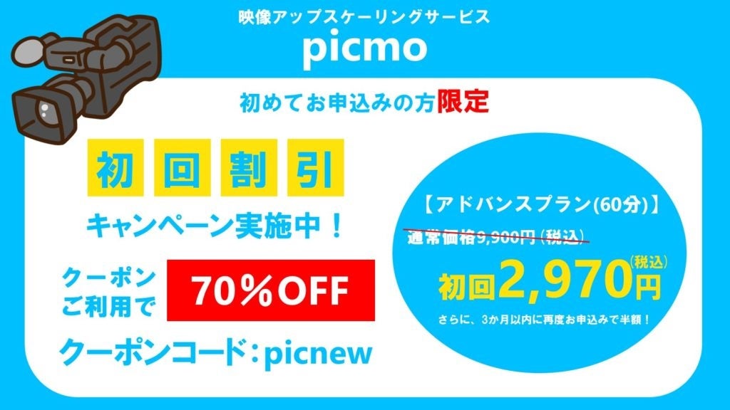 【5分以上の動画】のアップスケーリングをご希望される場合にご利用いただけるお得なキャンペーンです。