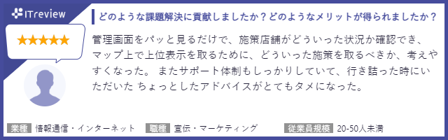 - 【「ITreview」に寄せられた『MEO Dashboard byGMO』利用者の声(一部抜粋)】