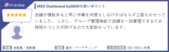 ■『MEO Dashboard byGMO』に関するレビュー:https://www.itreview.jp/products/meo-dashboard/reviews