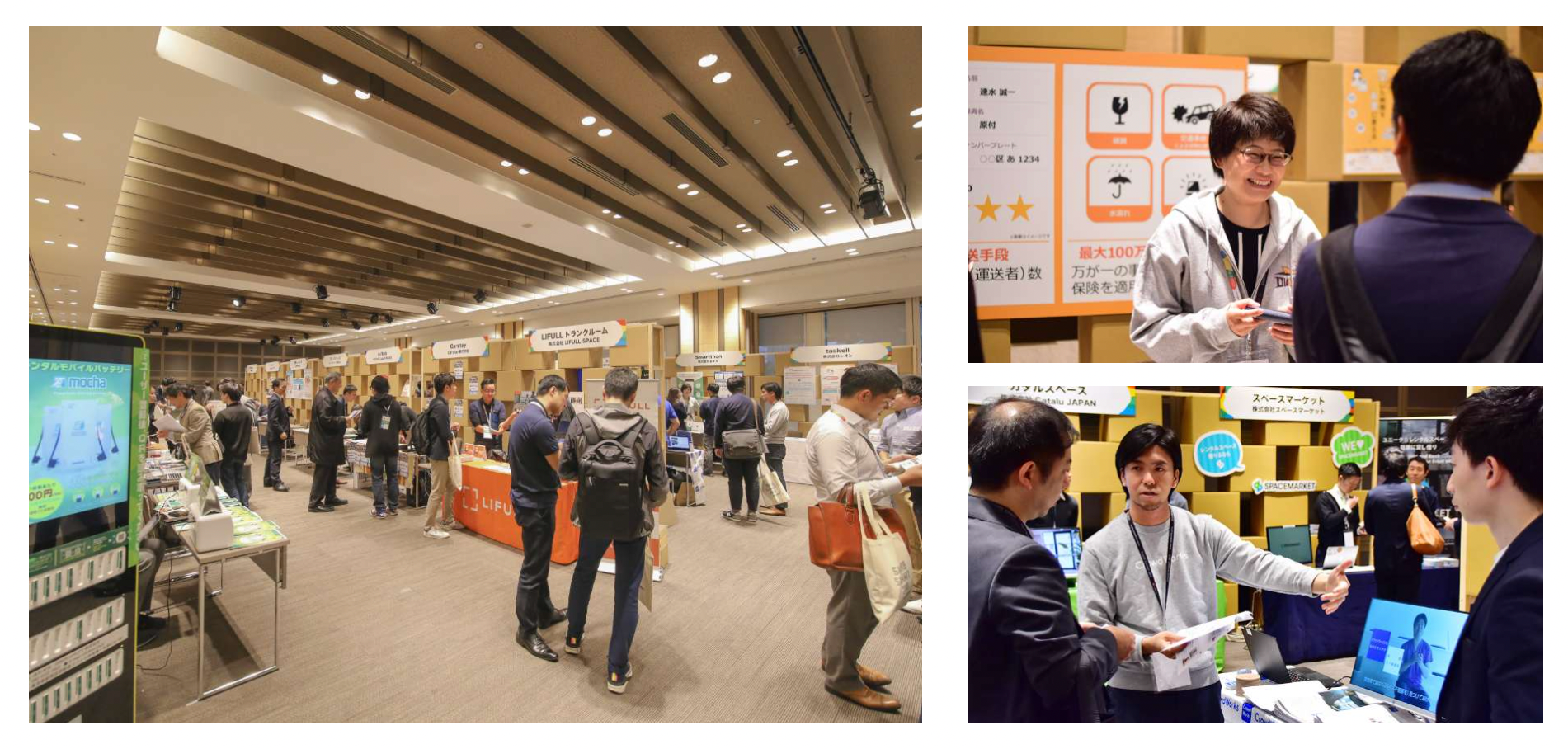 シェアリングエコノミーの全貌が学べるブースゾーン。自由に回遊しながら、様々なシェアリングサービスの事例、シェアリングエコノミーにまつわる企業のサービス、取り組み事例を知ることができます。