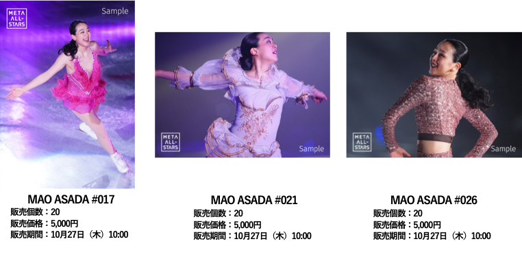 この度「META ALL-STARS」 より、現在アイスショー「BEYOND」全国ツアー開催中の浅田真央さんの新しいNFTの販売が決定いたしました。今回販売される第3弾・第4弾のNFTは2022年5月に販売された第1弾・第2弾と同様の「サンクスツアー」のフォトNFTとなります。第3弾は10月27日(木)10:00から、第4弾は11月3日(木)10:00から2週連続で販売いたします。