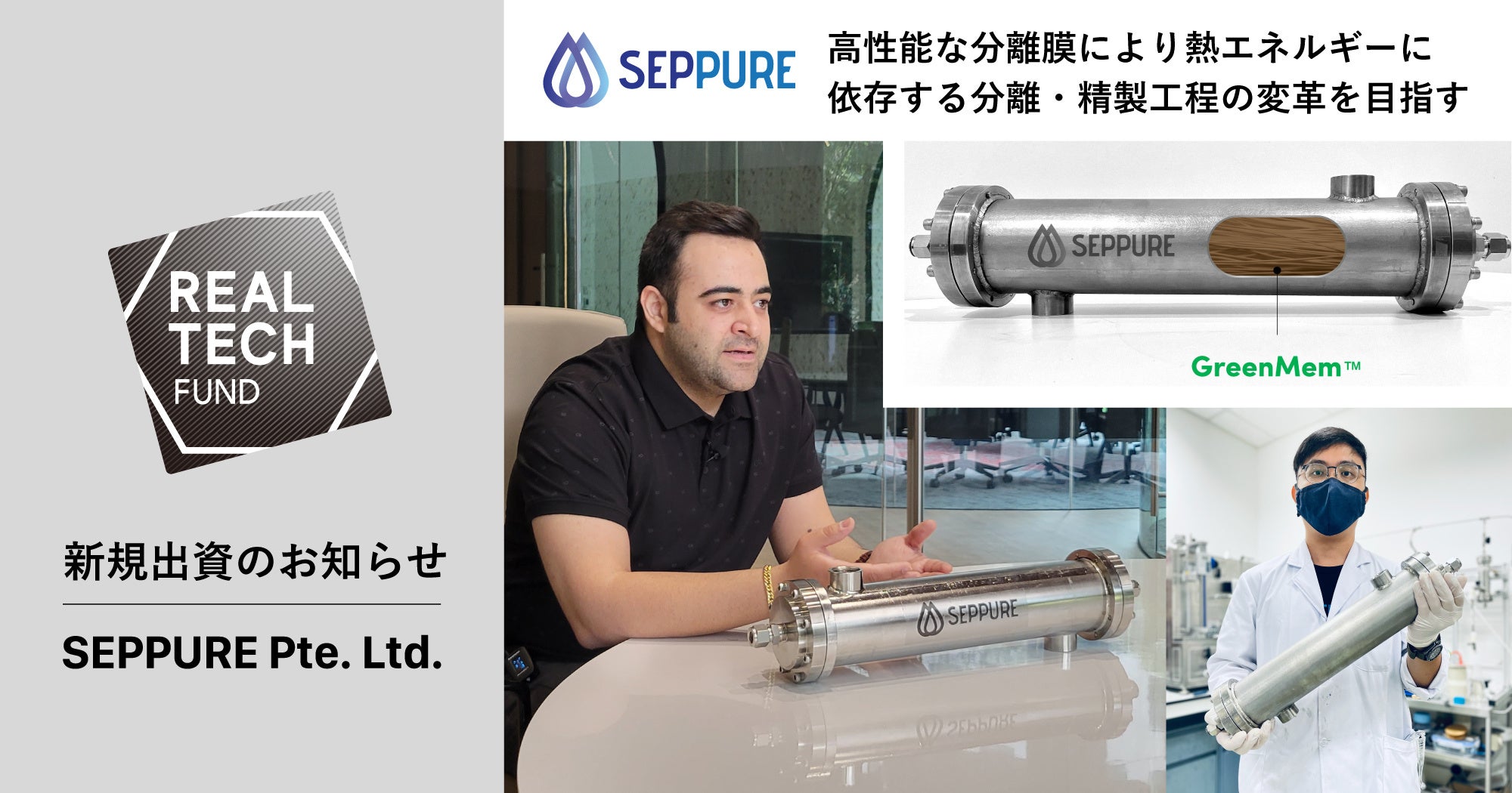 かねてより日本市場へ進出していたSEPPURE社は、当社グループ会社のリバネスが主催するTECH PLANTER DEMO DAY in Singapore2021に参加し、リアルテックホールディングス賞を受賞する等、リアルテックエコシステムとの関係性を築いてまいりました。SEPPUREは日本市場を重要視しており、植物油産業に限らず、化学・半導体・石油化学等の産業における実証パートナーとの連携を期待しています。当社は唯一の日本籍VCとして今回の調達ラウンドに参画いたします。パートナー企業やエコシステムとの連携を通じて、SEPPUREの日本市場進出を支援いたします。また、大規模システムの実装に挑戦するSEPPURE社に対して、パートナー企業や町工場ネットワークを活用した製造の支援も併せて実施して参ります。