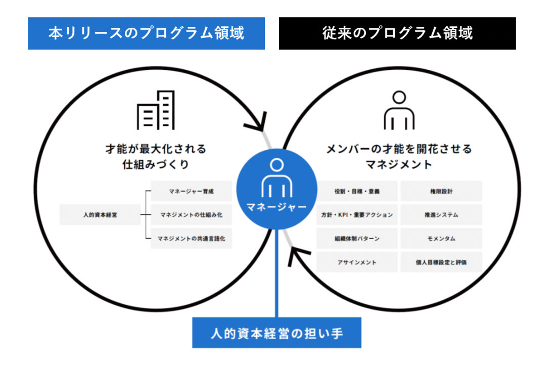 そこで、個人のマネージャーがメンバーの才能を活かすマネジメント能力の向上だけではなく、企業単位で才能が活かされる仕組みづくりをするという点に着目し、「人的資本経営を実現するためのマネジメントシステム設計、及び推進」を付け加えた経営者向けのトレーニングプログラムをリリースすることとなりました。