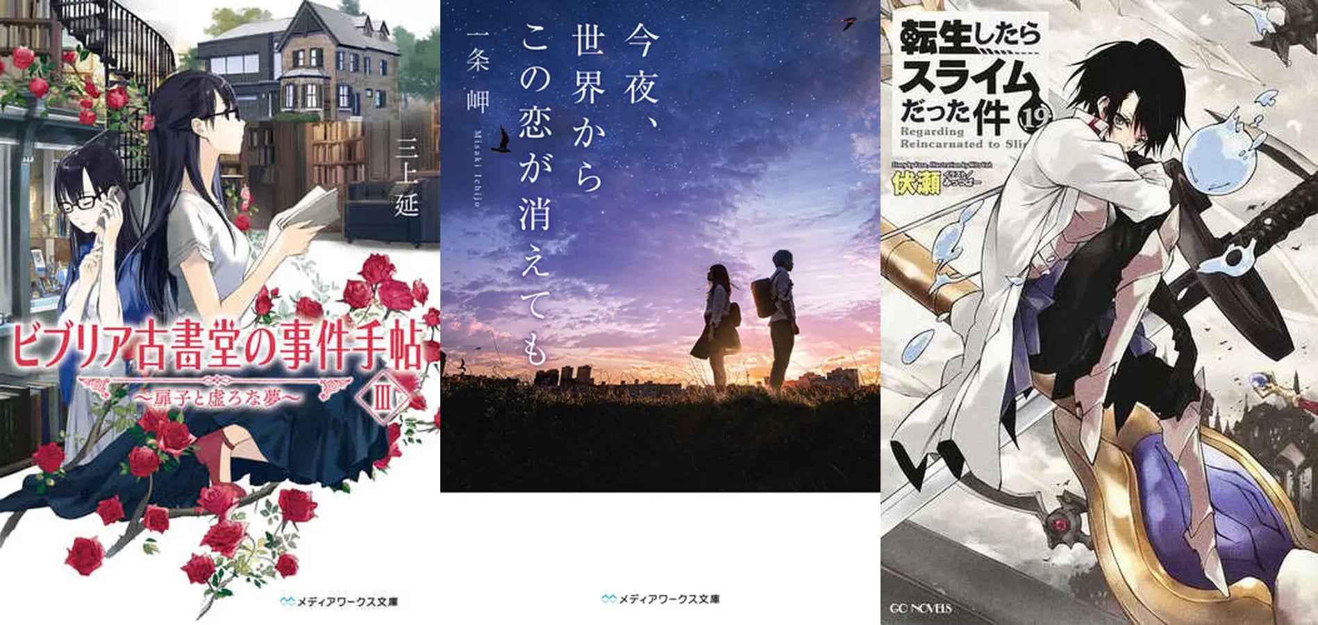 北海道をはじめとした地域(九州、沖縄を除く)で『ビブリア古書堂の事件手帖 2-3 扉子と虚ろな夢 (メディアワークス文庫)』が1位です。九州では『今夜、世界からこの恋が消えても (メディアワークス文庫)』、沖縄では『転生したらスライムだった件 19 (GC NOVELS)』が1位です。