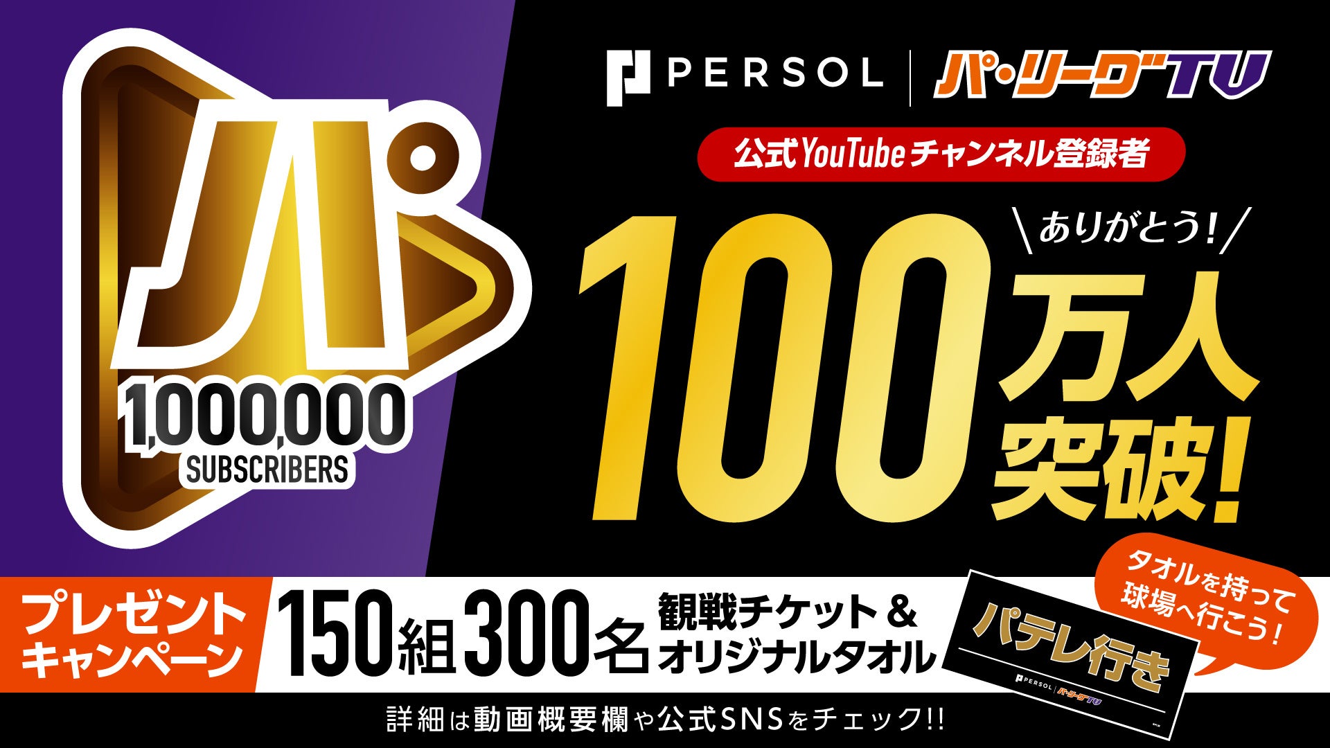 パーソル パ・リーグTV公式YouTubeチャンネルでは、プロ野球を多くの方にお楽しみいただきたく、様々なチャレンジを続けてまいります。今後もパーソル パ・リーグTV公式YouTubeチャンネルにぜひご期待ください!