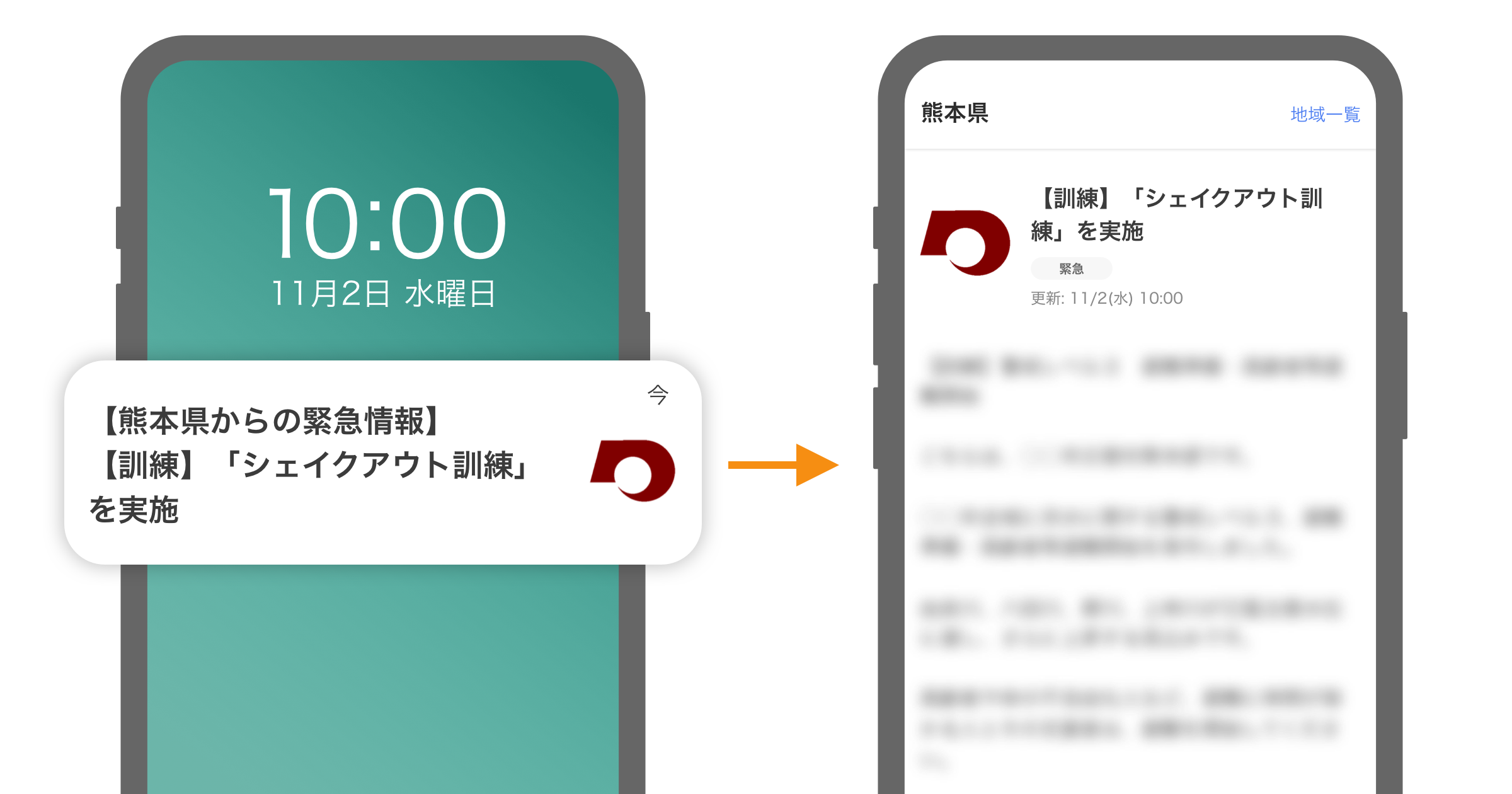 熊本県とYahoo! JAPANは、「災害に係る情報発信等に関する協定」を令和2 年1 月に締結し、県内の緊急災害情報や避難所の開設状況などを「自治体からの緊急情報」として、「Yahoo!防災速報」アプリなどを通じて、ユーザーに通知しています。本訓練は、この「自治体からの緊急情報」の訓練通知を活用して実施します。