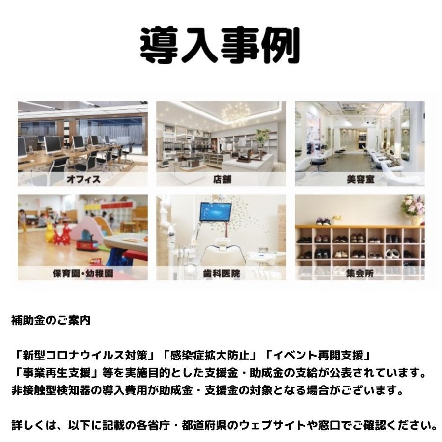 非接触型検知器の導入費用が助成金・支援金の対象となる場合がございます。