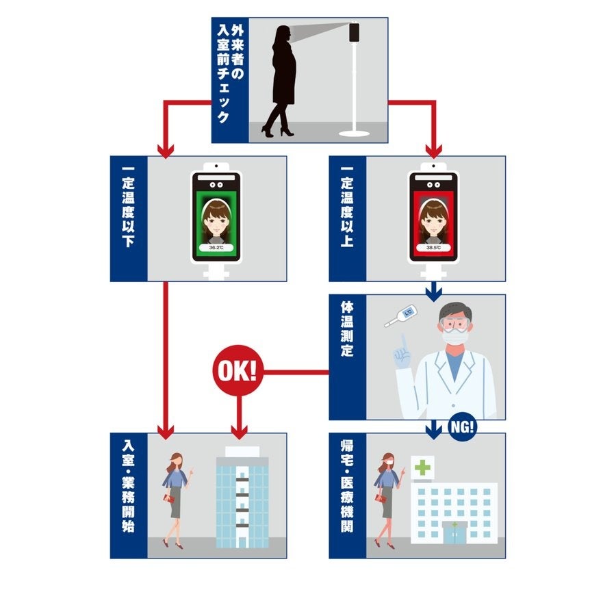 本製品は、顔の表面温度を検知して、体温が高い可能性のある人物を発見するための装置であり、体温を測定して対象者が疾病にり患しているかどうかを診断する機器ではありません。体温が高い可能性のある人物を検知した場合は、必要に応じて、体温計での体温測定や医師による診断を行って下さい。