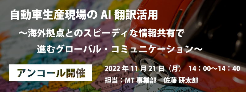 自動車業界特有の技術書類はもちろん、国際規則の正確な翻訳にも対応したAI自動翻訳「T-4OO」の実演を交え、明日から使える業務効率化事例をお伝えします。