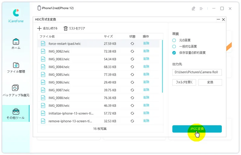 iCareFoneを使ってJPEG形式に変換する方法は簡単な操作で分かりやすく、変換だけでなく写真ファイルの管理・転送にもご利用頂けますので、この機会に是非お試しください。