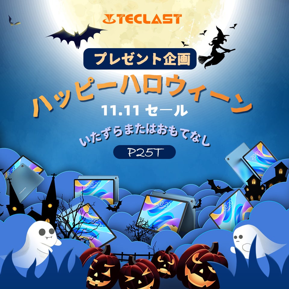 ハロウィンセールはいよいよ始まります。TeclastxAmazonもハロウィンイベントを用意いたしますよ。大人気のT40Pro、P30AirとP25Tタブレット最大24%オフのクーポンを配布します。ハロウィンプレゼント企画も開催中で、是非ご参加ください~