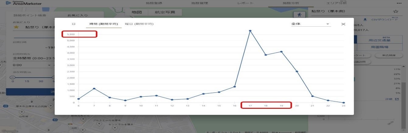 イベント実施後、近隣エリアの混雑状況を「時間帯別」「詳細エリア別」「道路別」等の観点で、推計値による人流データの分析を行い、コロナウイルス感染対策の効果等を定量的に検証するデータ提供による支援を行います。