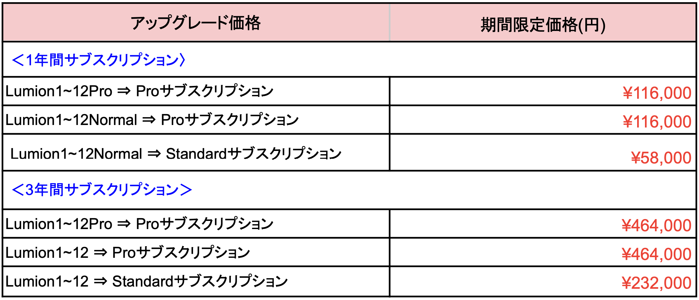 また、既にLumionをお持ちの方もアップグレードしやすい価格となっております。是非この機会にLumionサブスクリプション版の導入をご検討下さい。