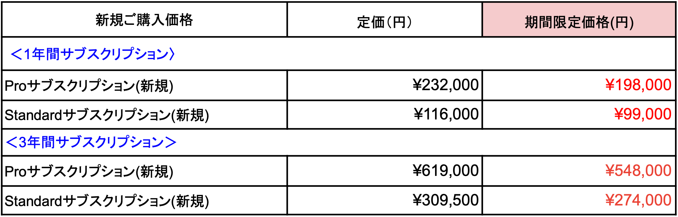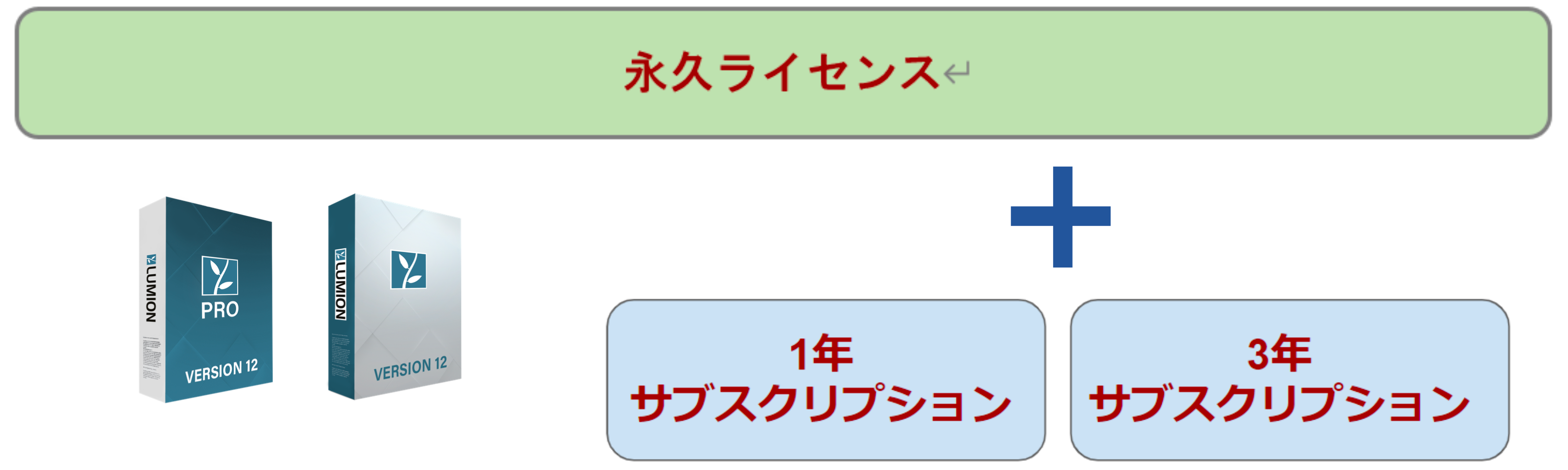 従来の永久ライセンスに加え、1年間・3年間のサブスクリプションライセンスです。