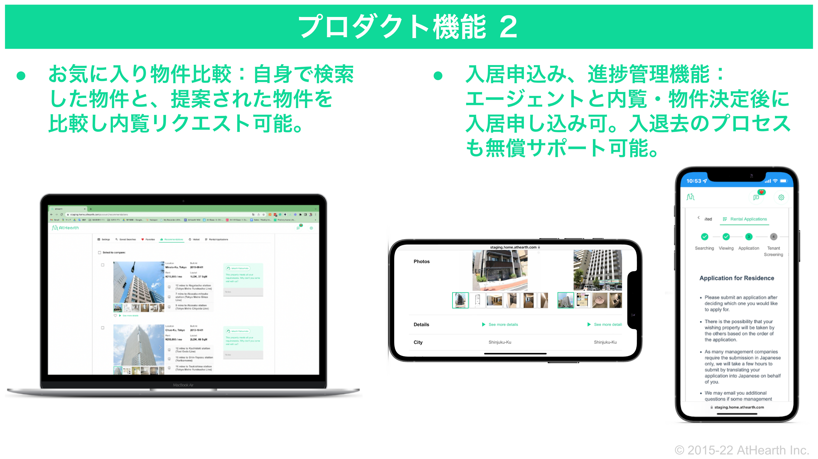 アットハース社がこれまでの事業活動を通じて培ってきた知見とネットワークをフルに詰め込んで開発を進めてきたプロダクトが、ついにリリースされることになりました。不動産賃貸仲介のオペレーションを大幅にアップデートするもので、お部屋探しに悩む在留外国人の方が、安心して快適な住まいを見つけることができるようになると期待しています。このプロダクトリリースを皮切りに、在留外国人の方々をはじめ、不動産賃貸仲介に携わるさまざまなステークホルダーにとって有益なエコシステムづくりに、アットハース社がカテゴリーリーダーとしてさらに励んでいくことをサポートして参ります。