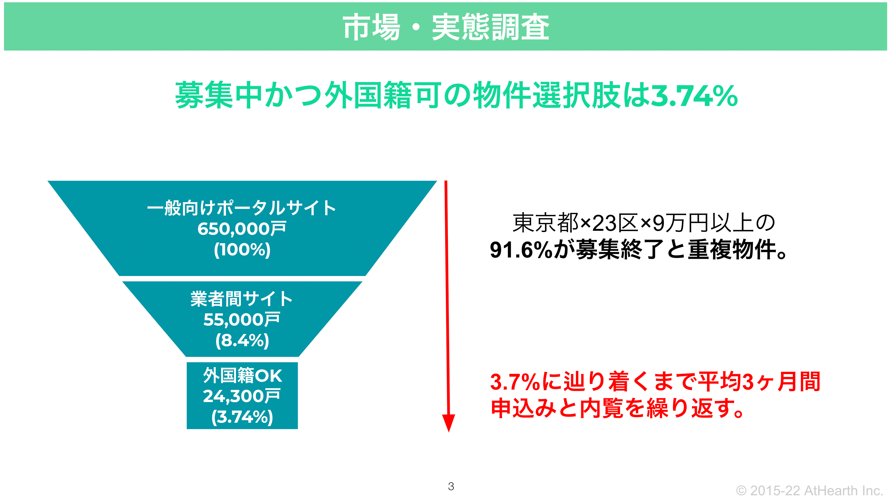 一般的な不動産ポータルサイトに掲載されていて、外国籍の方が実際に入居申込できる物件は全体の3.74%(※4)しかありません。