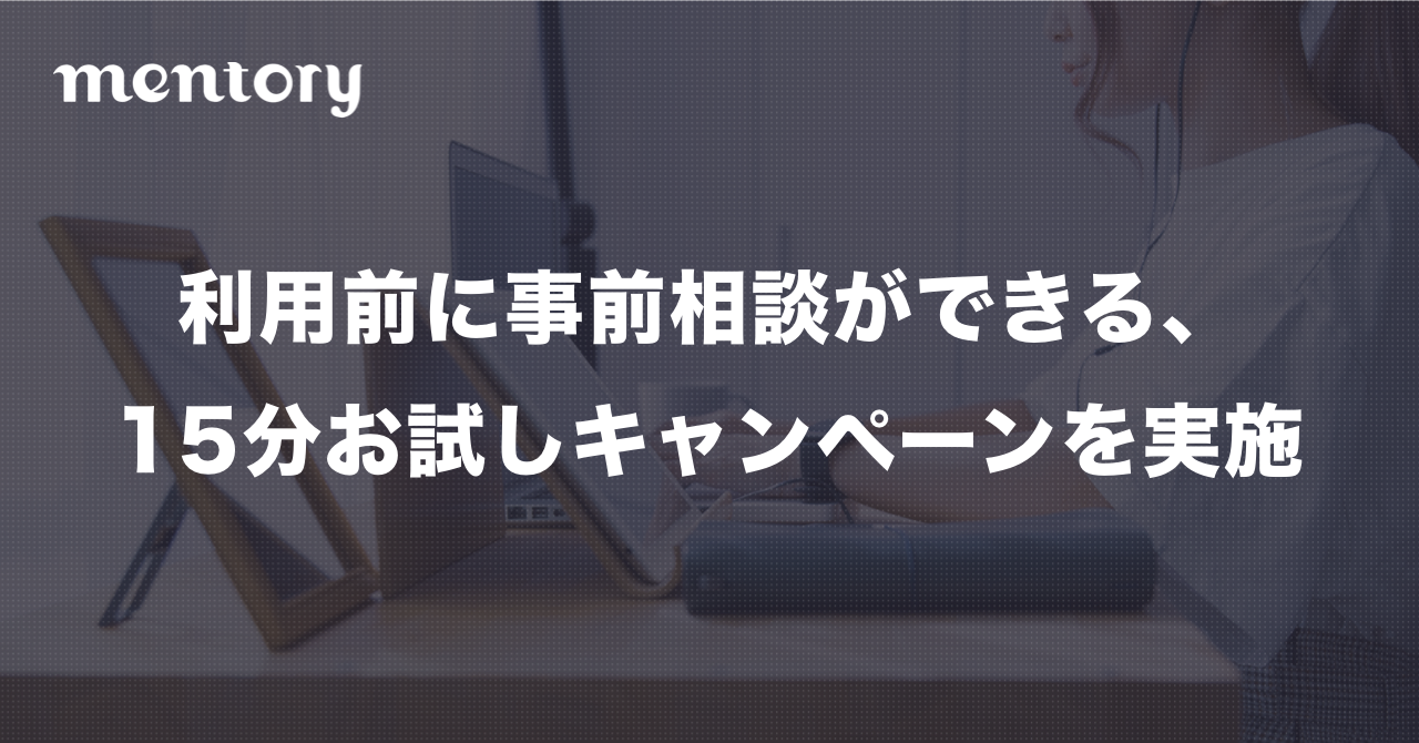 メンタリー株式会社(本社:京都府京都市、代表取締役社長:今谷 祐通)はエンジニア相談サービス「mentory」において「15分お試しキャンペーン」を開始いたしました。