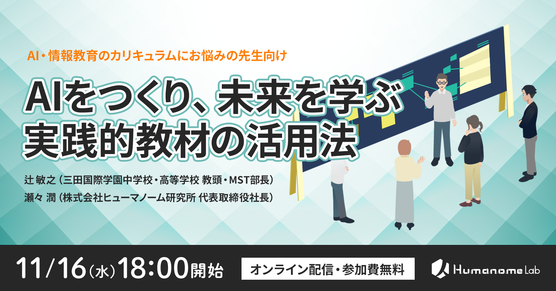 このセミナーでは、生徒が楽しんでAIを学べることに重点をおいた授業プランをご提案します。一般的なAI教育プランと異なり、当社の「プログラミングがいらないAI開発ツール」を利用するため、情報に限らず、理科・社会・芸術等の科目でもアレンジしてお使いいただけます。今回は、授業開発にご協力いただいた三田国際学園中学校・高等学校の先生をお招きし、実際にこのカリキュラムを使った授業の様子などについてお話しいただきます。