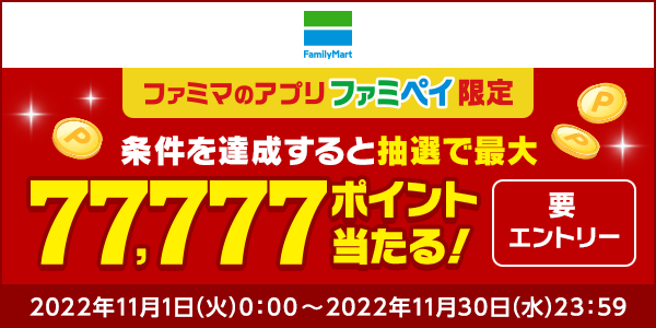 | キャンペーンURL | https://pointcard.rakuten.co.jp/campaign/familymart/20221101/ |