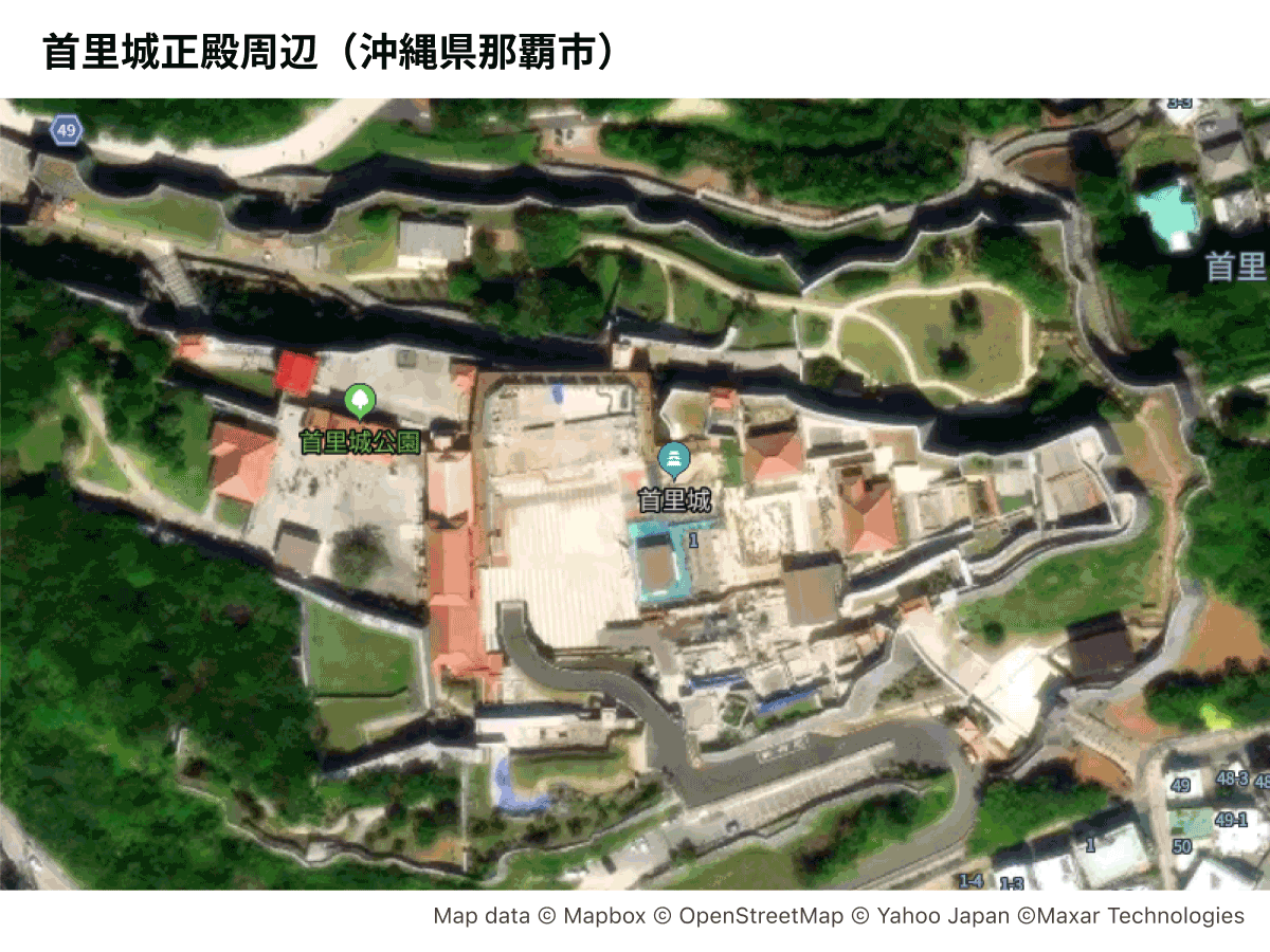 2019年に正殿内部から発生した火災により、正殿をはじめとする9施設が焼失しました。2022年11月3日に、再建に向けての起工式が実施予定です。ユーザーは地図上で再建の様子を確認できます。