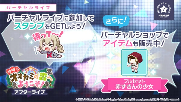 また、「絶叫!?オオカミの森へようこそ! アフターライブ」の開催に先立ち、10月31日(月)からバーチャルショップにて、フルセット「赤ずきんの少女」を販売中です。