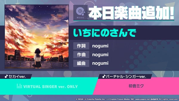 「いちにのさんで」(作詞・作曲:nogumi)を、『プロジェクトセカイ』の新たなリズムゲーム楽曲として追加いたしました。