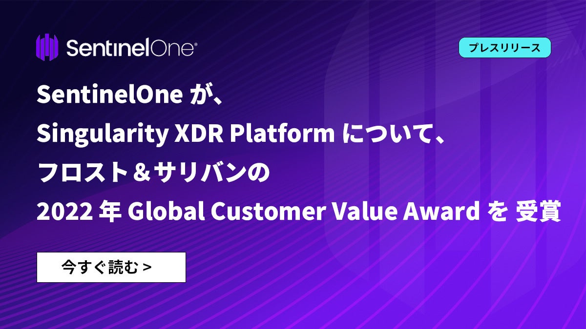 テキサス州サンアントニオ。 – 2022 年 10 月 6 日 – 世界的に著名な調査とコンサルティング会社である フロスト&サリバンが、同日、自律型サイバーセキュリティのリーダー企業である SentinelOne に対して 2022 Global Customer Value Award の表彰を授与しました。経済状況に大きく不確実性が伴う昨今、組織はテクノロジーへの投資、特にサイバーセキュリティなどの運用上の重要事項に対して最大の ROI を求めています。今回、SentinelOne がGlobal Customer Value Award を受賞した主な理由は、同社が、最も急成長しているサイバーセキュリティの上場企業であり、未だかつてない高い運用価値と短期間における価値実現と高い ROI を提供することにあります。