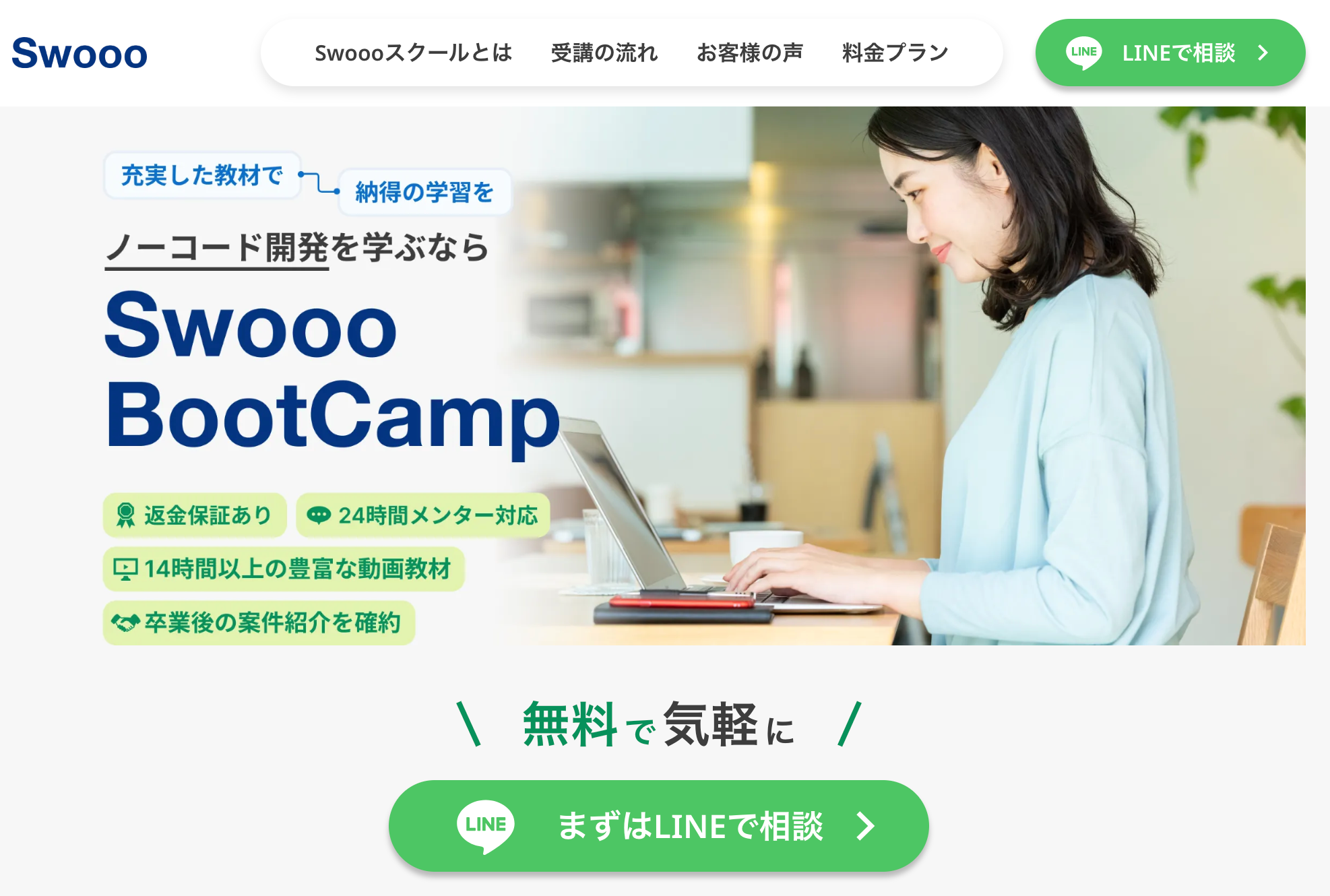 ノーコードスクール「Swooo BootCamp」の全プランを10%OFFで受講可能になります。