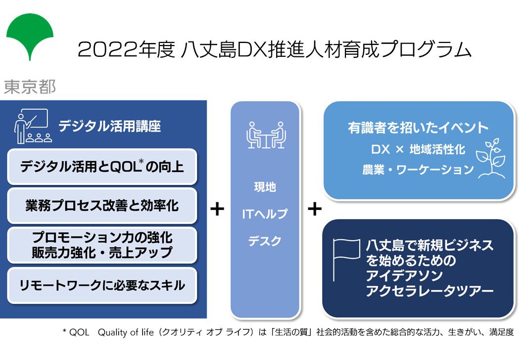 本年度は、DX推進の機運醸成とDX推進人材育成のために、島内向けリスキリングプログラムとしてDX推進人材育成プログラム「八丈島デジタル活用講座」等を実施します。