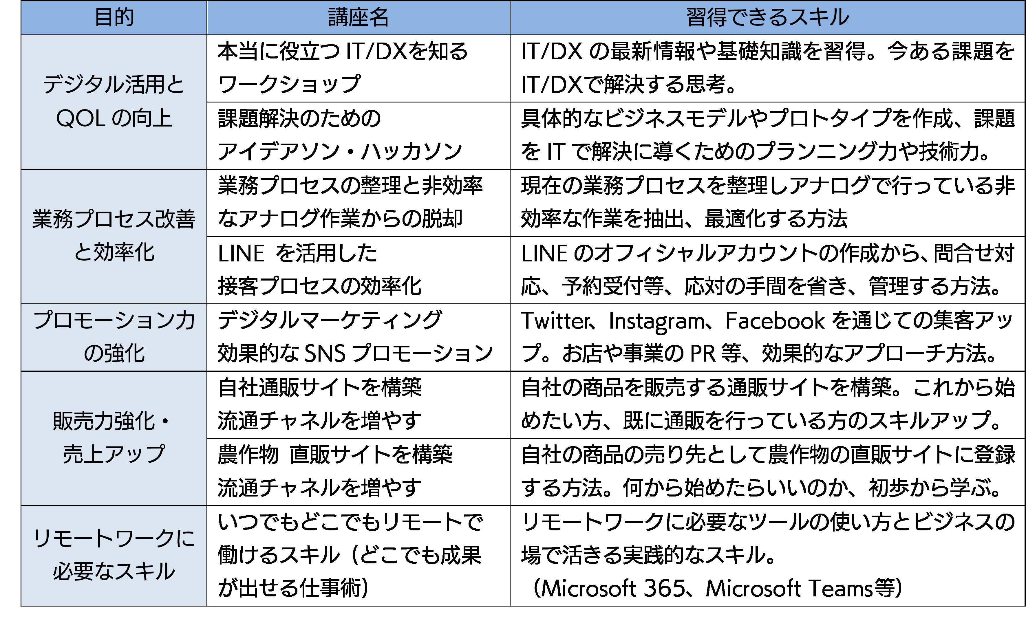 島民の直近の課題をITで解決し、身近な DX を体感することを目的としたプログラムを提供します。