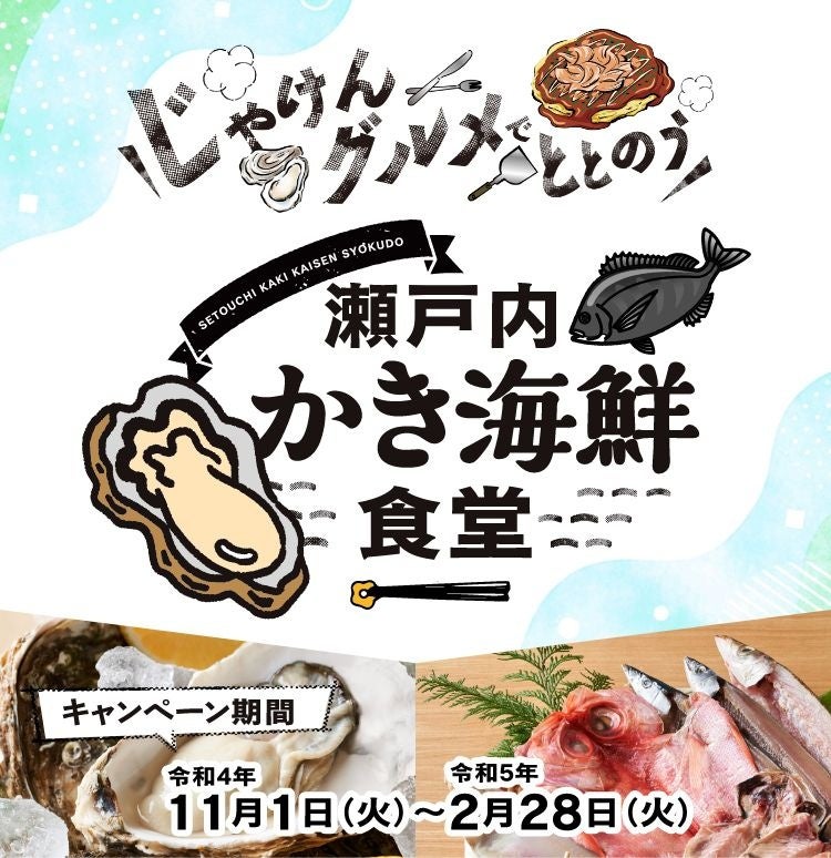 今回のキャンペーンは、広島の「食」をより多くの人に楽しんでいただける毎年恒例の企画です。広島には、お好み焼やカキに代表される特徴的なおいしいグルメが盛りだくさんです。広島旅行を楽しんだあとは、おいしい広島グルメに舌鼓を打ち、さらに「瀬戸内かき海鮮食堂」のスタンプラリーに参加して、豪華な賞品をGETしてください!