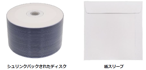 近年のプラスチックごみや地球温暖化問題を背景とした環境配慮型商品ニーズの高まりを受け、これまでDVD-R・CD-Rを収納していたプラスチックケースの代わりに紙スリーブを採用し、パッケージも紙材料にすることでプラスチック材料の使用を削減、環境に配慮したエコパッケージとなりました。プラスチック使用量削減率※2は、従来のプラスチックケース品に比べて10枚パックで95%、20枚パックで 98%、そして複数のディスクを重ねて収納できるスピンドルケース品では10枚パックで69%、 50枚パックで78%と、それぞれ大幅に削減しました。また、紙スリーブでディスクを保管することにより、省スペースな収納を実現します。