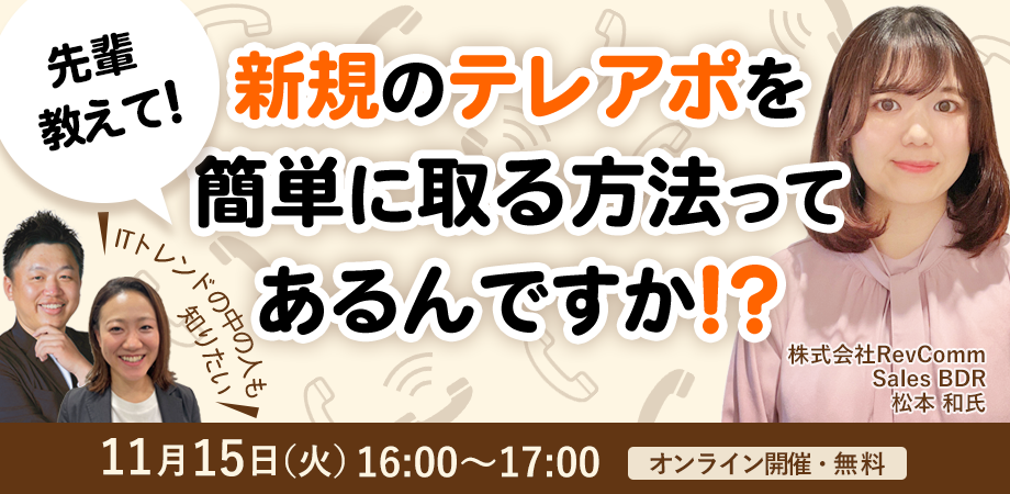 ウェアデータベースの開発を行っている株式会社RevComm(本社:東京都渋谷区、代表取締役:會田武史氏)と共催で、「先輩教えて!新規のテレアポを簡単に取る方法ってあるんですか!?」 をテーマとしたセミナーを2022年