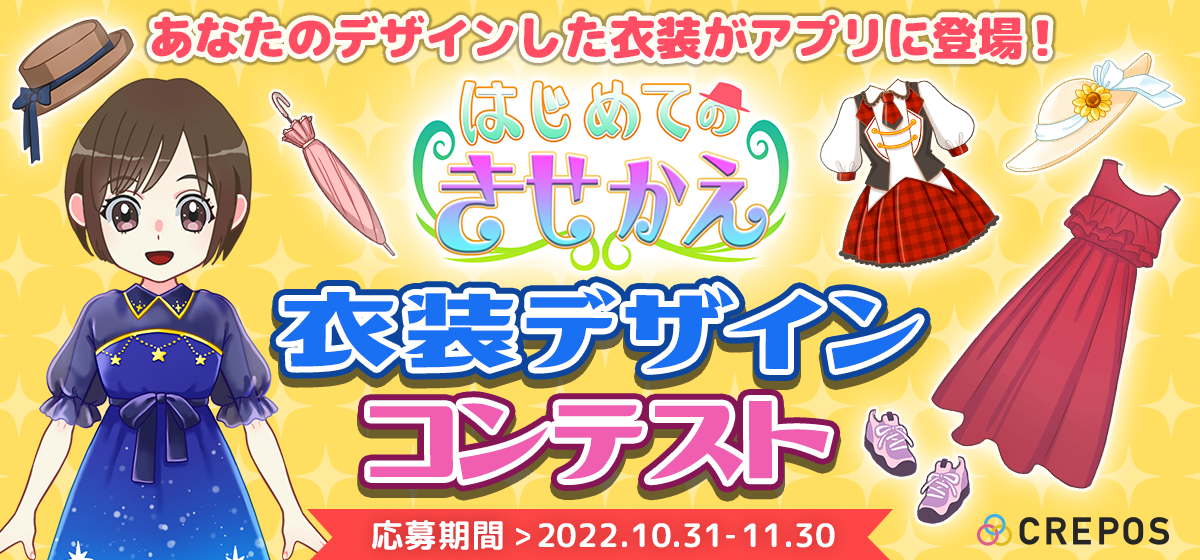 未就学児〜小学生向けきせかえアプリ「はじめてのきせかえ」に登場する衣装のデザインを募集いたします。