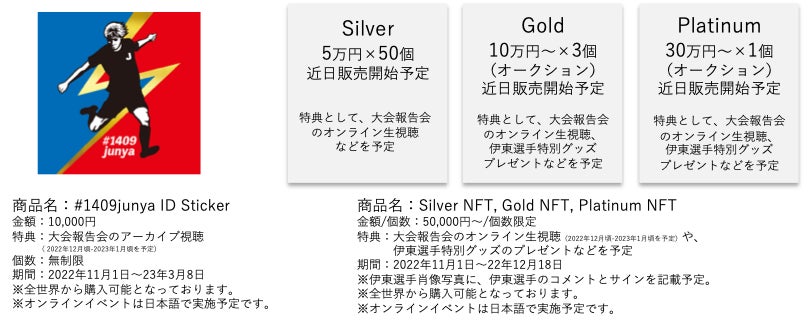 これを基に本プロジェクトでは、ID Stickerに加えて、伊東選手のオンラインでの大会報告会イベント( 2022年12月頃-2023年1月頃を予定)に参加できる、伊東選手にまつわるリアルなグッズがもらえる、などの体験が得られるNFTも合わせて展開し、伊東選手とつながりたいファンの気持ちに応えることを目指します。
