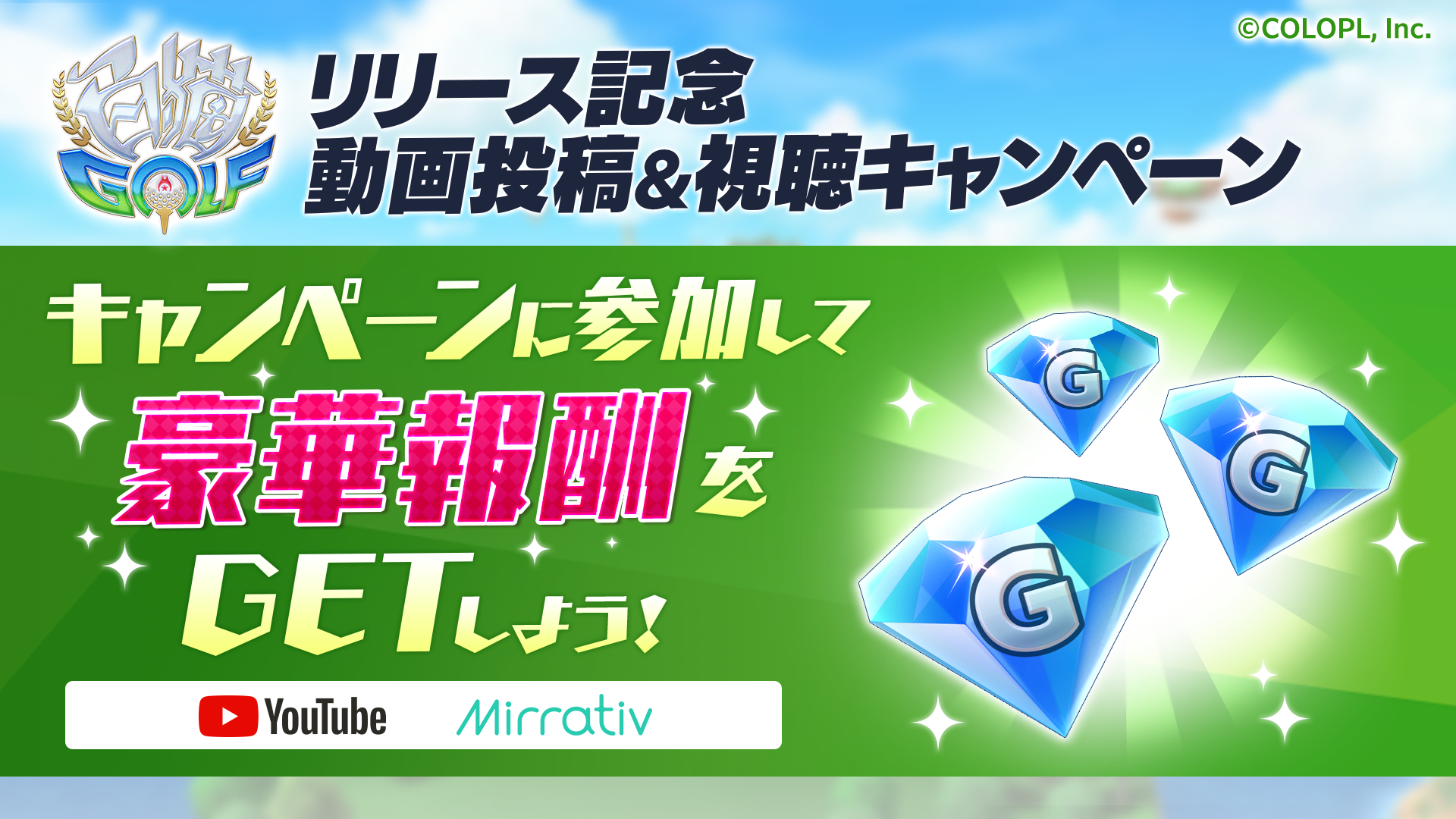 「YouTube」と「ミラティブ」では、動画投稿&視聴キャンペーンを開催いたします。本キャンペーンでは『白猫GOLF』の動画を投稿・配信をしてくれた方には、もれなくゲーム内アイテムをプレゼントいたします。また、投稿・配信された動画を視聴された方にもプレゼントがございます。視聴するほど多くの報酬が貰えますので、動画配信者の方も、視聴者の方も奮ってご参加ください。