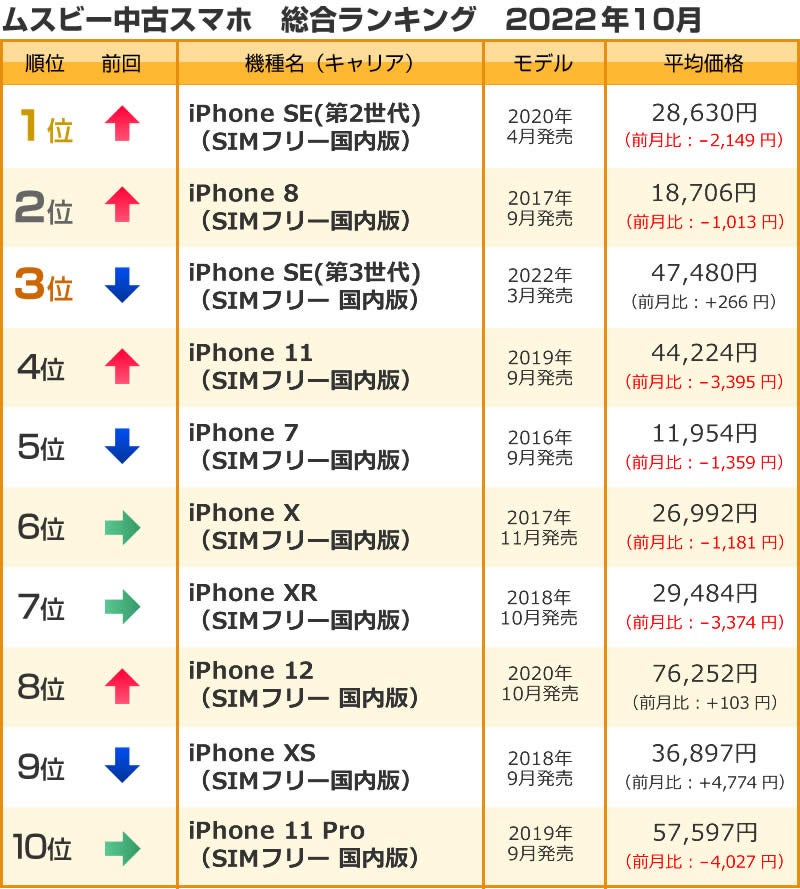 【1位】 iPhone SE(第2世代) (SIMフリー国内版) / 28,630円(-2,149円)