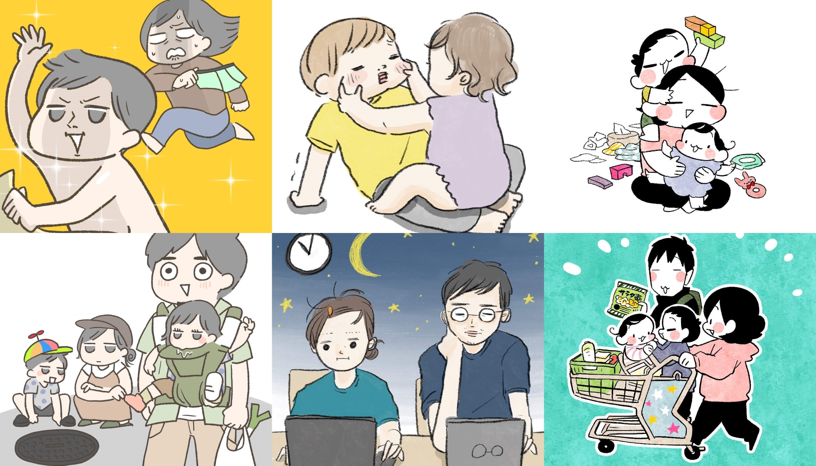 2児(4歳男の子と1歳女の子)の母親。企業に勤めながら、育児イラストを描く。日々の小さなことでもかわいらしいイラストと、おもしろおかしい描写が育児中のママ・パパたちに大人気。