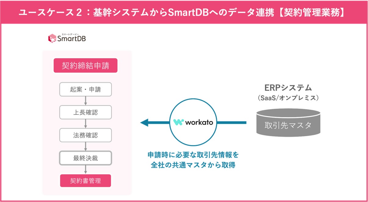 SmartDBは、Microsoft 365やSalesforceなどのクラウドサービスともすでに連携しております。同時に、社会全体で業務アプリケーションのクラウド化が進むにつれ、利用企業から連携先アプリケーションのさらなる拡充が期待されておりました。