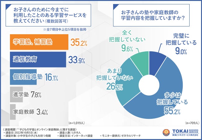 今回、「子どもの学習とオンライン家庭教師」に関する調査を行った東海ビジネスサービス株式会社(https://www.tokai-bs.co.jp/)は、オンライン家庭教師『ドリーム』(https://www.dream-teacher.com/)を運営しています。