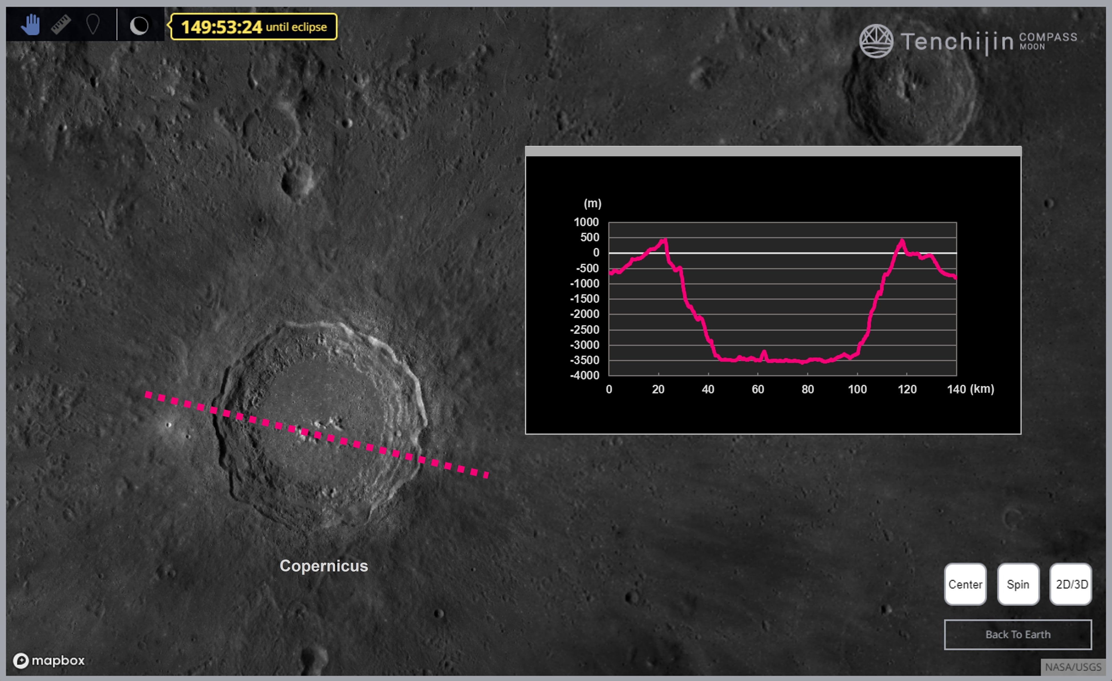 天地人コンパス MOON では月食の影の動きを3Dの月に投影したことがユニークな点です。