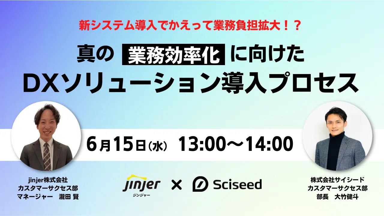 そこで、今回、バックオフィスのDXソリューションを多数展開しているjinjerとAIを活用した問い合わせ削減ソリューションを展開するサイシードの共同で、業務効率化に向けた効果的なDXソリューション導入プロセスをご紹介するセミナーを開催いたします。