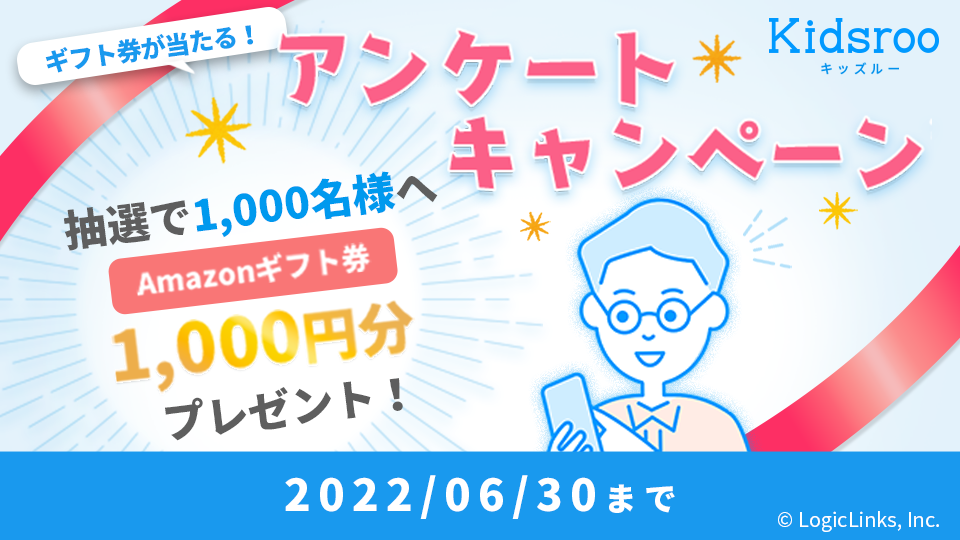 アンケートにご回答いただいたKidsrooご利用者の中から抽選で1,000名様へ1,000円分のAmazonギフト券をプレゼントいたします。