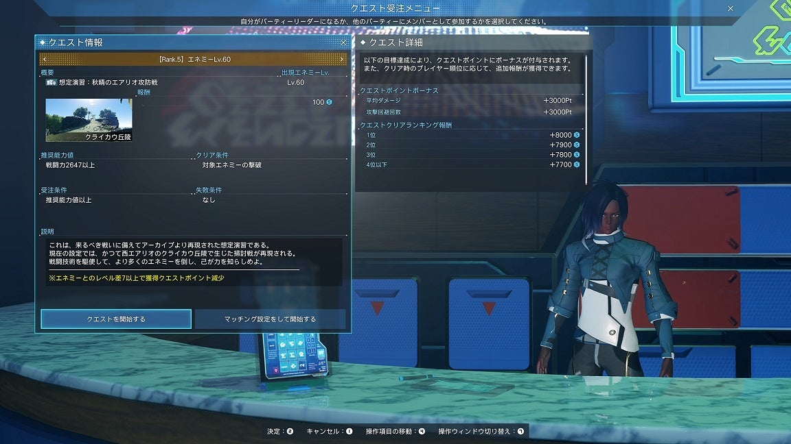 期間限定イベント「オータム’22」に合わせ、期間限定クエスト「想定演習:秋晴のエアリオ攻防戦」が登場します。次々と出現するエネミーを倒し、最後に待ち受けるボスエネミーを倒す進行型のクエストで、クエストトリガーは必要なく、各リージョンのクエストカウンターから何度でも受注可能です。
