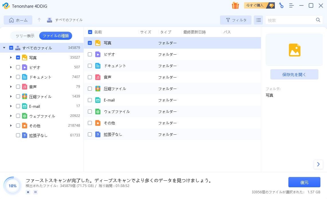 方法② Tenorshare 4DDiGを利用して、ゴミ箱を空にしたパソコンから写真や画像を復元する