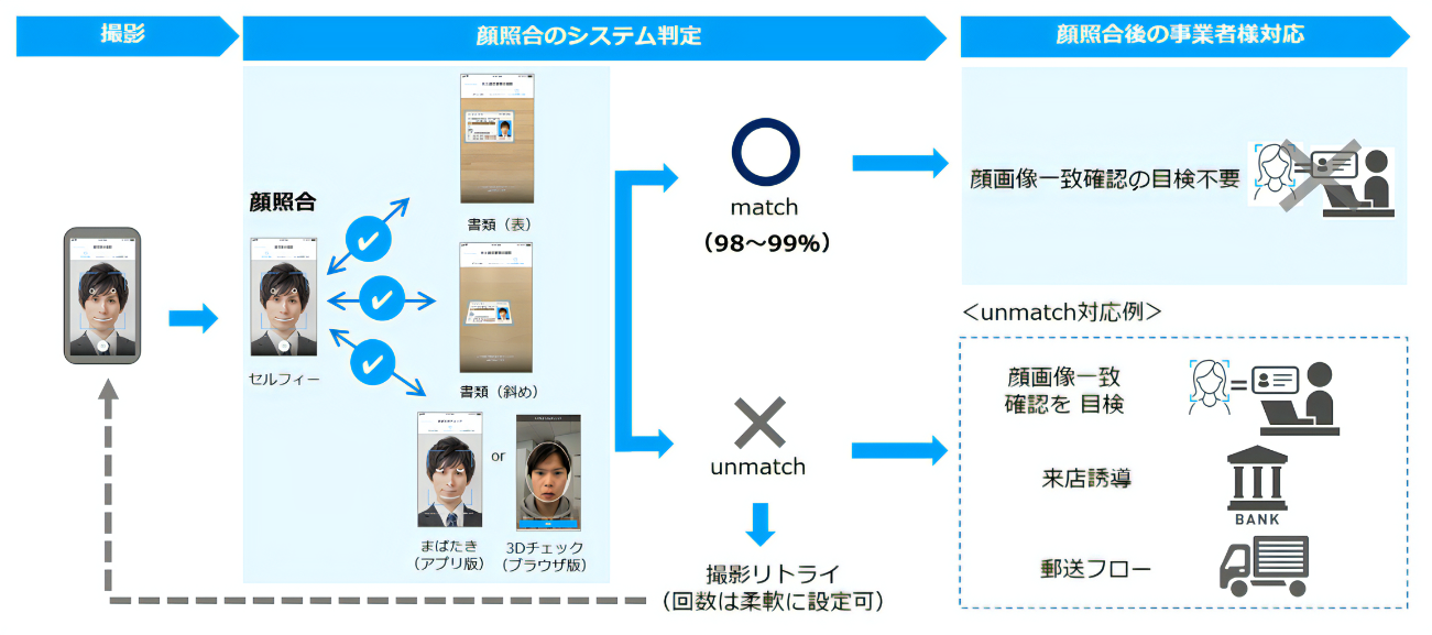 ・高精度な生体認証技術により、バックオフィスにおける顔画像の一致確認のための目検が不要。