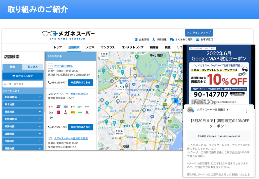 「メガネスーパー」の実際に活用されている店舗集客手法をご紹介いたします。