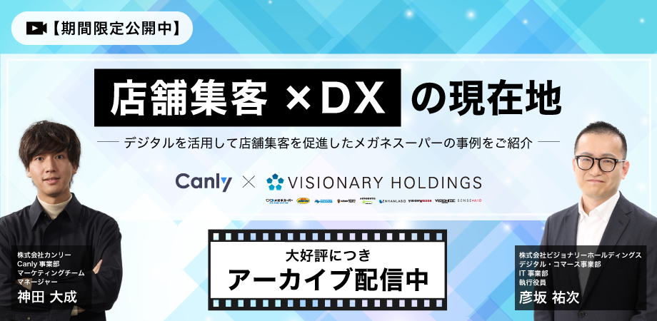 本講演では「メガネスーパー」を全国に300店舗以上運営している株式会社ビジョナリーホールディングスの彦坂様にご登壇頂き、デジタルを活用した来店促進への取り組み、特にGoogleマップ・自社HPを有効活用して実店舗への来店・購買の強化を実現したお話を具体的な取り組み内容・成果と共にお話頂きます。