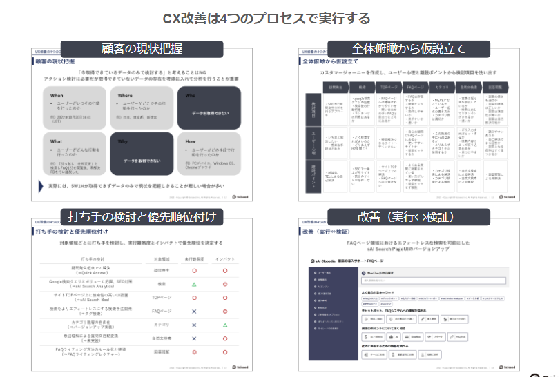 ・CX改善には4つのプロセスがあり、課題解決プロセスとして汎用的に活用できるイメージがつく